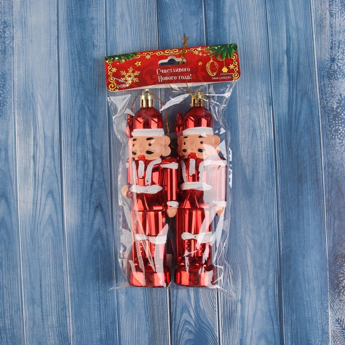 Ёлочные игрушки 2 шт. «Зимнее волшебство. Щелкунчик» пластик,14×3 см, бело-красный — Характеристики