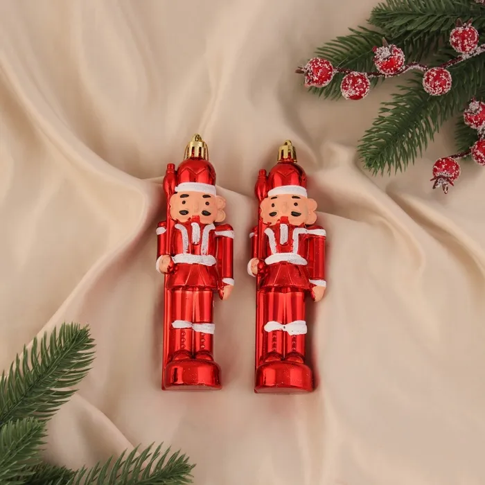 Ёлочные игрушки 2 шт. «Зимнее волшебство. Щелкунчик» пластик,14×3 см, бело-красный