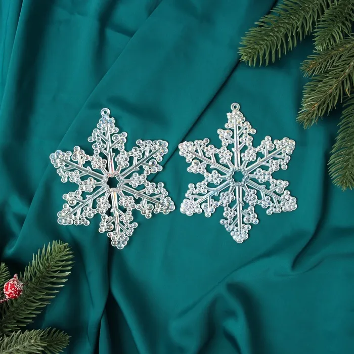 Ёлочные игрушки 2 шт. «Зимнее волшебство. Снежинка бусинки» пластик, 12х10 см, прозрачный перламутр