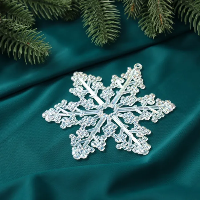 Ёлочные игрушки 2 шт. «Зимнее волшебство. Снежинка бусинки» пластик, 12х10 см, прозрачный перламутр — Характеристики