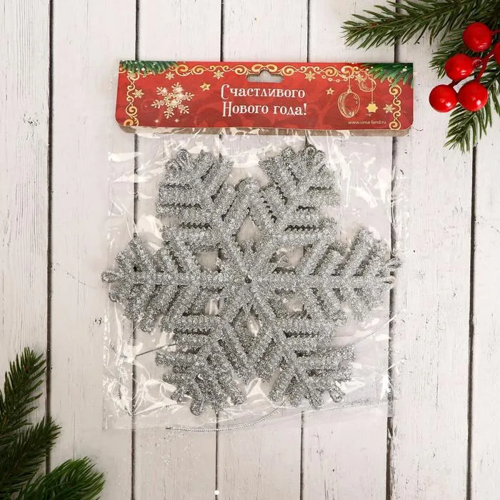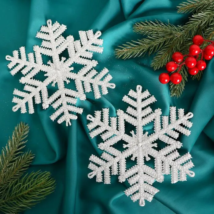 Ёлочные игрушки 2 шт. «Зимнее волшебство. Снежинка махровая» пластик, d=16 см, серебро — Характеристики