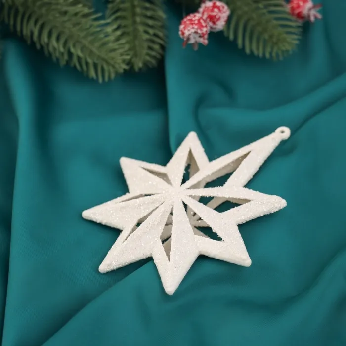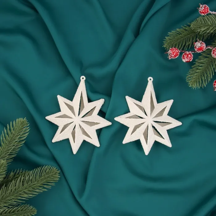 - Комплект — 2 снежинки, достаточно для создания яркого акцента на ёлке или в подарочной композиции без лишней детализации.
