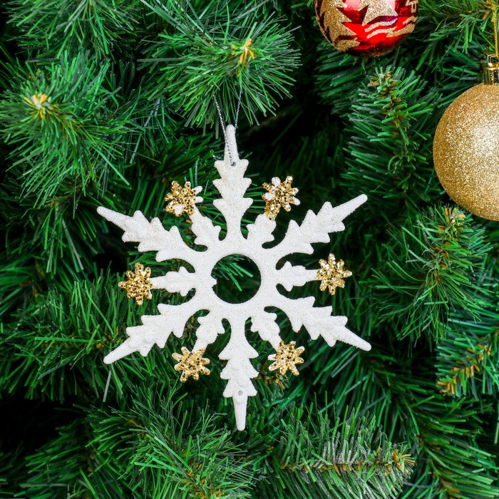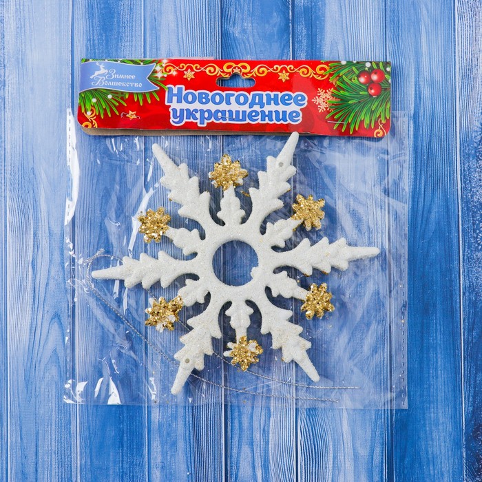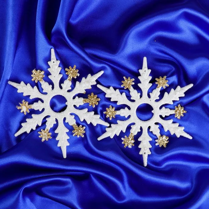 Ёлочные игрушки 2 шт. «Зимнее волшебство. Снежинка полярная» пластик, d-14,5 см, бело-золотой