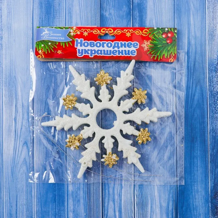 Ёлочные игрушки 2 шт. «Зимнее волшебство. Снежинка полярная» пластик, d-14,5 см, бело-золотой — Характеристики