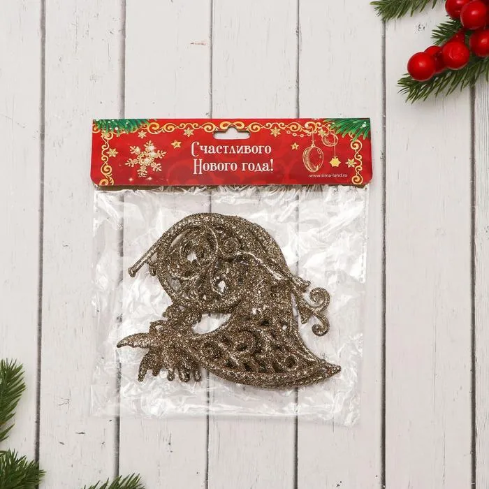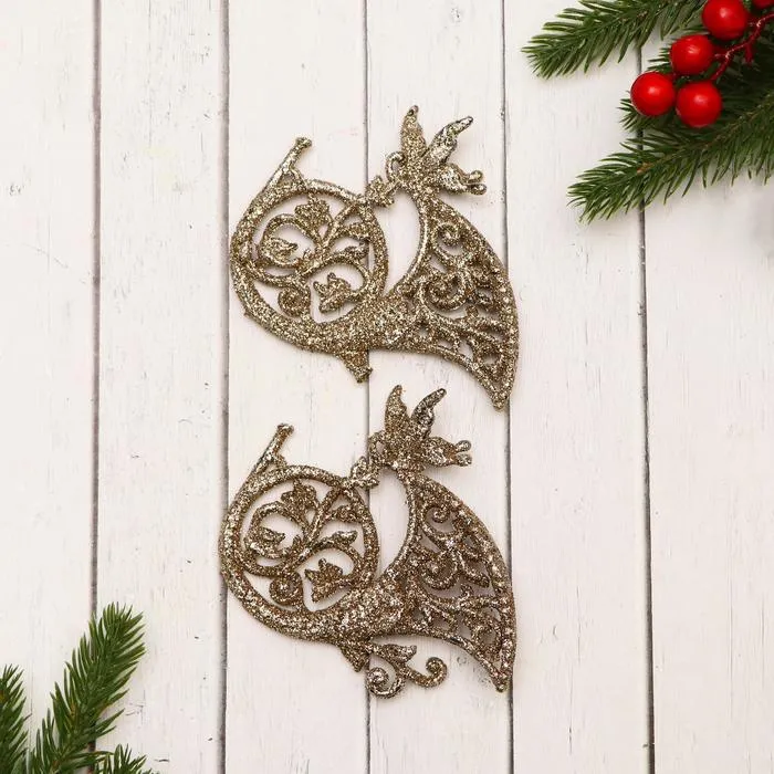 Ёлочные игрушки 2 шт. «Зимнее волшебство. Туба узорная блеск» пластик, 10х9 см, золото — Характеристики