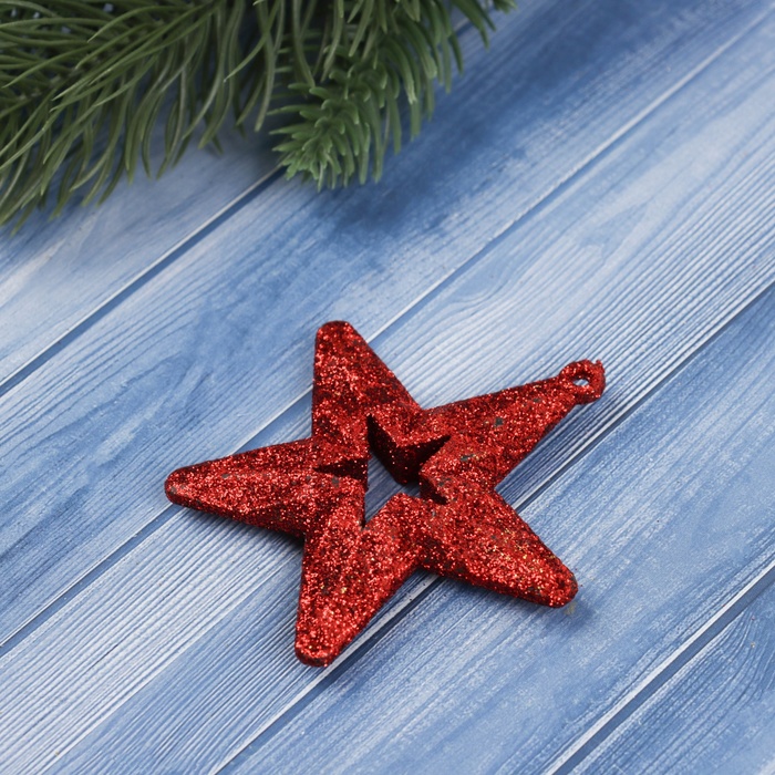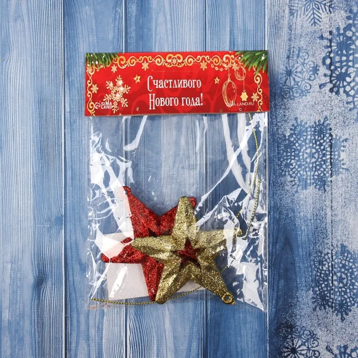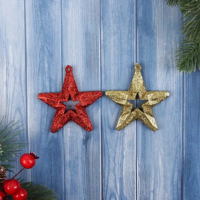 Ёлочные игрушки 2 шт. «Зимнее волшебство. Звезда блеск» пластик, 7х6,5 см, золото красный — Характеристики