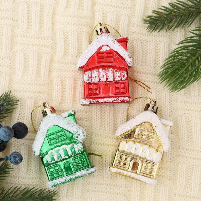 Ёлочные игрушки 3 шт. «Домик в снегу», 5.5×3.5 см, МИКС — Характеристики