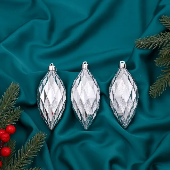 Ёлочные игрушки 3 шт. «Сосулька-рубик», 10 см, серебро — Характеристики