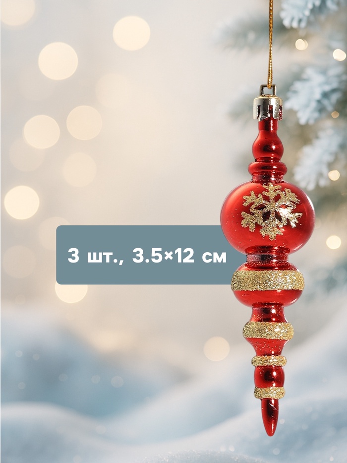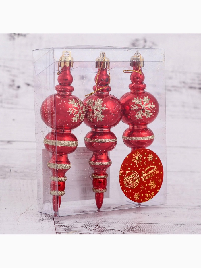 Ёлочные игрушки 3 шт. «Сосулька со снежинкой», 3.5×12 см, красный — Характеристики