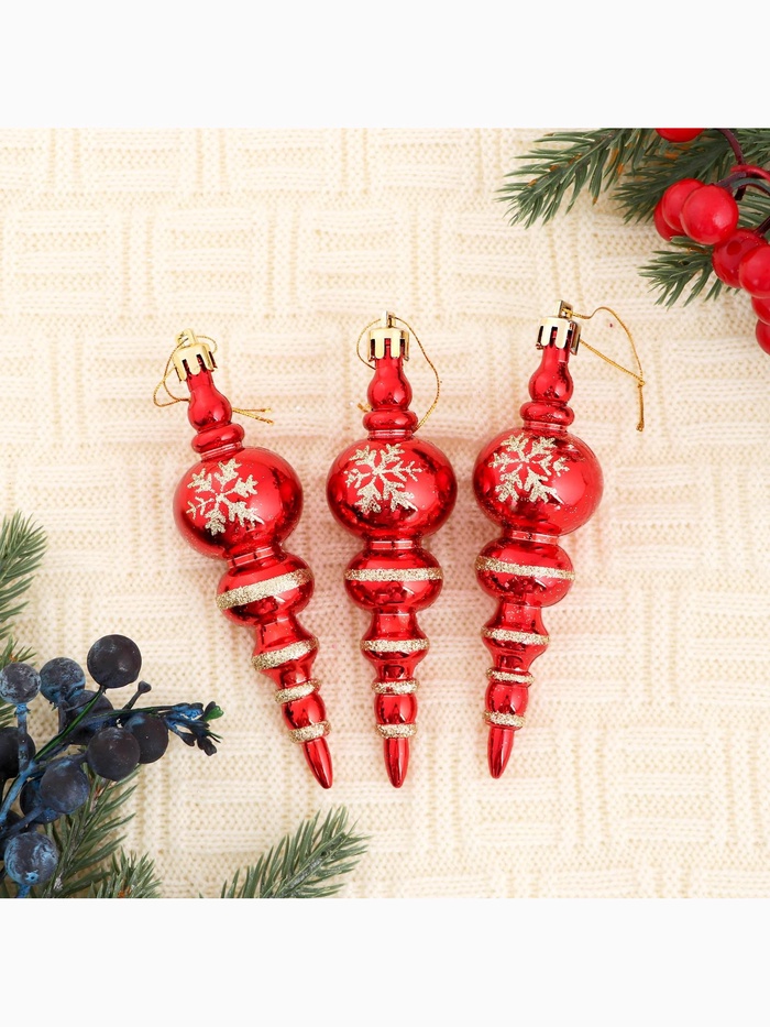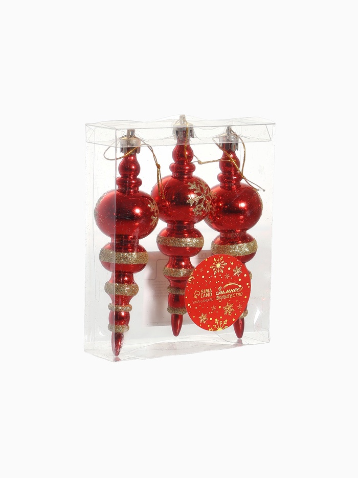Ёлочные игрушки 3 шт. «Сосулька со снежинкой», 3.5×12 см, красный