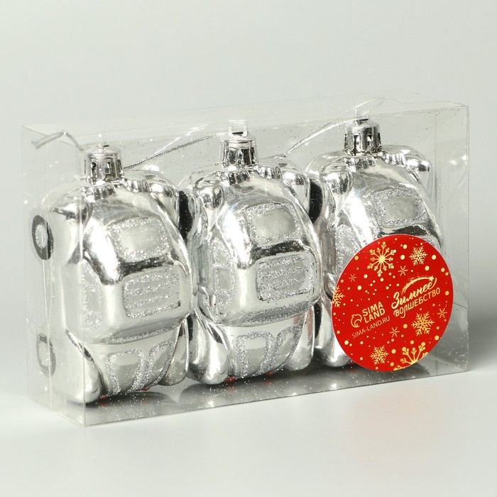 Ёлочные игрушки 3 шт, «Зимнее волшебство, Автолегенда» пластик, 7,5х4 см, серебро — Характеристики