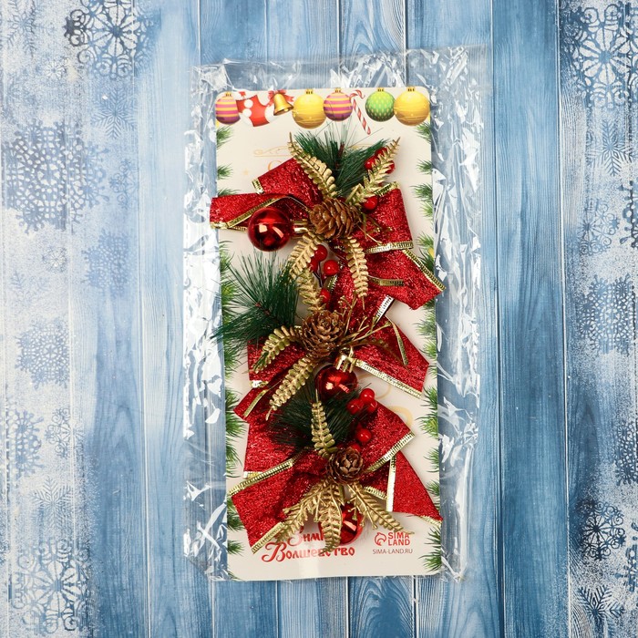 Ёлочные игрушки 3 шт. «Зимнее волшебство. Бант изыск» пластик, 10х7 см, красный — Характеристики