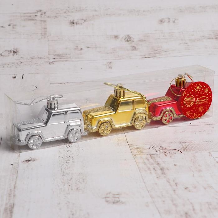 Ёлочные игрушки 3 шт. «Зимнее волшебство. Драйв» пластик, 7.5×3.5 см, МИКС — Характеристики