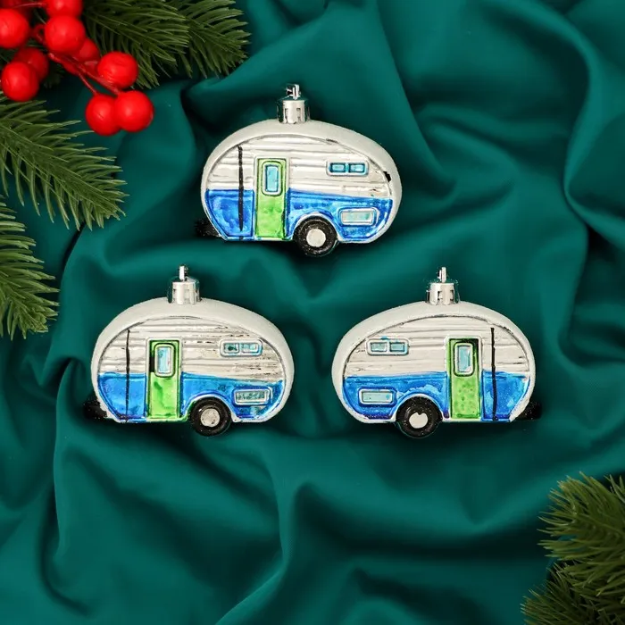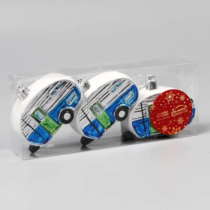 Ёлочные игрушки 3 шт, «Зимнее волшебство, Фургончики» пластик, 4х7 см, синий — Характеристики