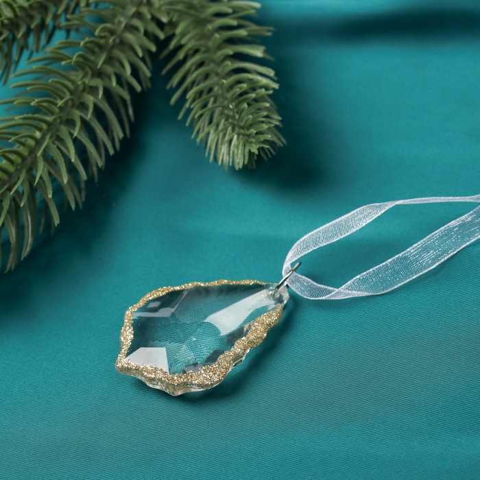 Набор из трёх прозрачных ёлочных кристаллов с золотистыми деталями украшает новогоднюю ёлку в стиле ар-деко. Миниатюрные фигуры добавляют изящества и создают праздничное настроение, отражая свет гирлянд и наполняя интерьер теплом.