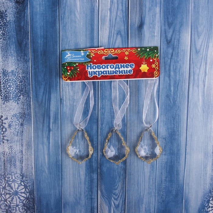 Ёлочные игрушки 3 шт. «Зимнее волшебство. Капля», 4.5×3 см, прозрачный с золотом — Характеристики
