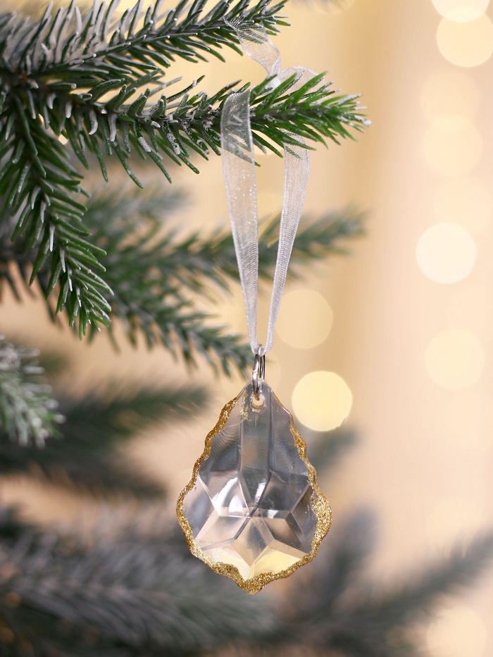 Прозрачные кристаллы отражают огни гирлянд, усиливая игру света и создавая уютную атмосферу. Такой декор помогает наполнить дом праздничным настроением и сделать оформление ёлки выразительным и стильным.