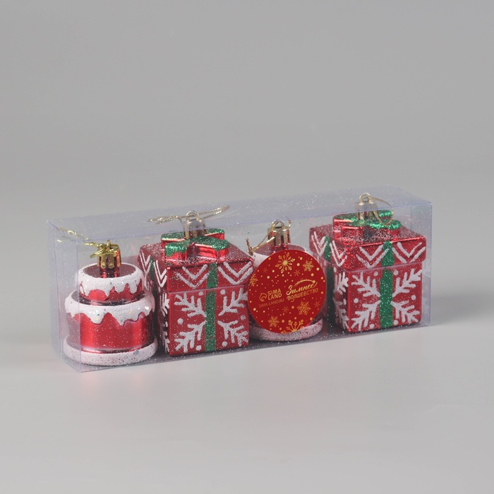 Ёлочные игрушки 3 шт. «Зимнее волшебство. Карнавальный» пластик, 7х5 см, красный