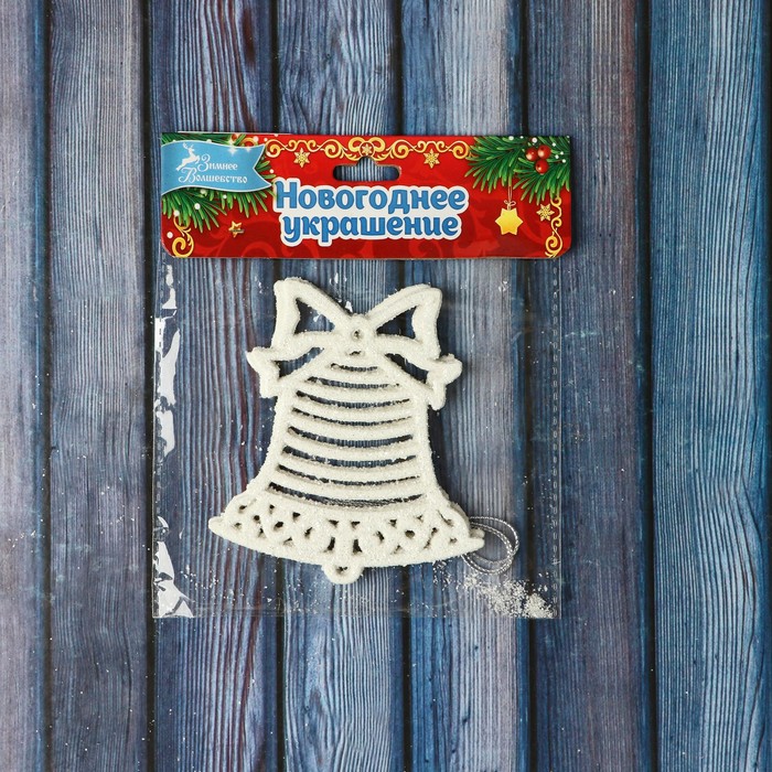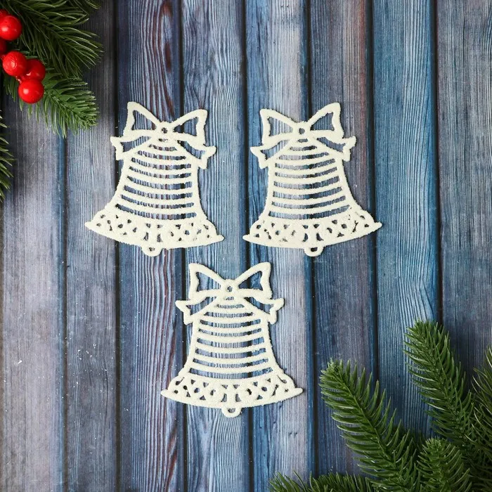 Ёлочные игрушки 3 шт. «Зимнее волшебство. Колокольчик в полоску люкс» пластик, 6х9 см, белый — Характеристики