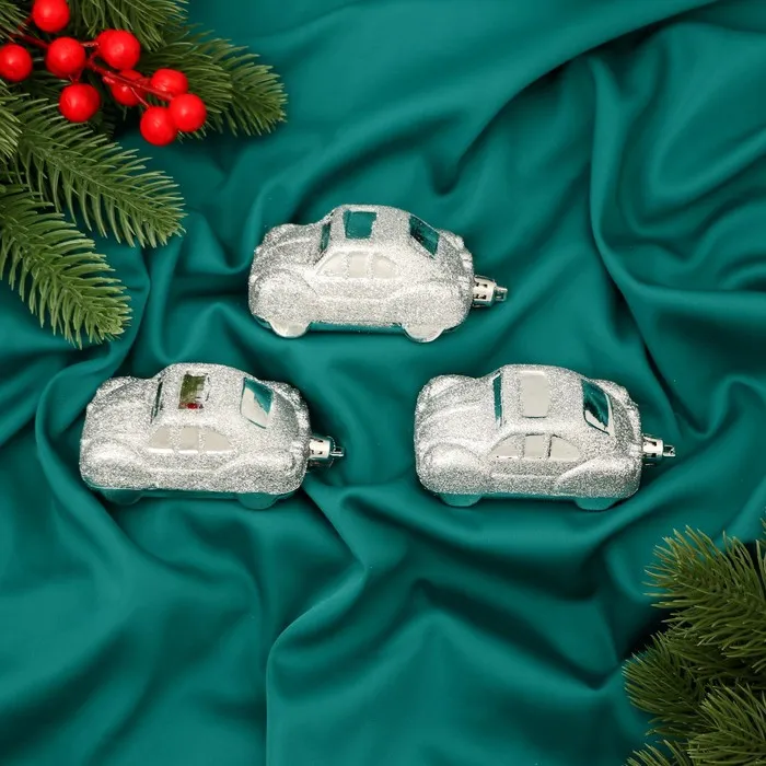 Ёлочные игрушки 3 шт, «Зимнее волшебство, Машинки» пластик, 9х3,5 см, серебро
