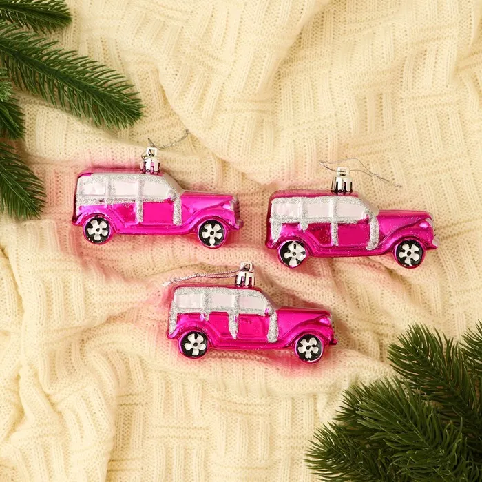 Ёлочные игрушки 3 шт, «Зимнее волшебство, Модельки» пластик, 9х3,5 см, розовый