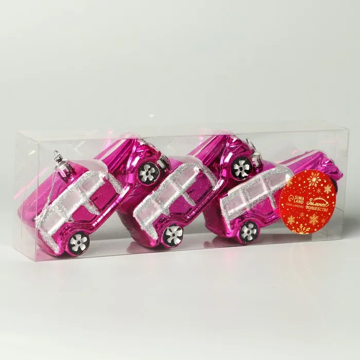 Ёлочные игрушки 3 шт, «Зимнее волшебство, Модельки» пластик, 9х3,5 см, розовый — Характеристики