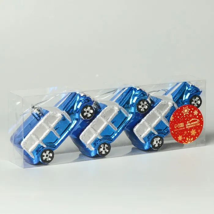 Ёлочные игрушки 3 шт, «Зимнее волшебство, Модельки» пластик, 9х3,5 см, синий — Характеристики