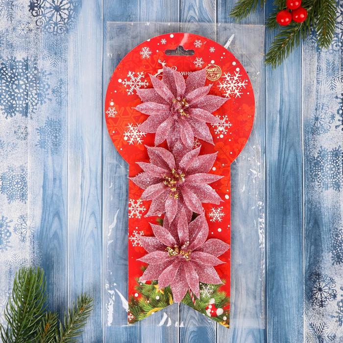 Ёлочные игрушки 3 шт. «Зимнее волшебство. Нежный цветок» пластик, 10 см, розовый — Характеристики