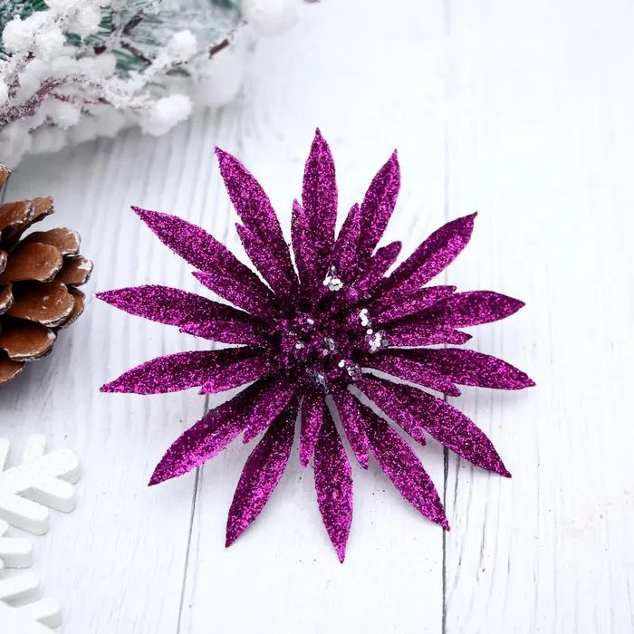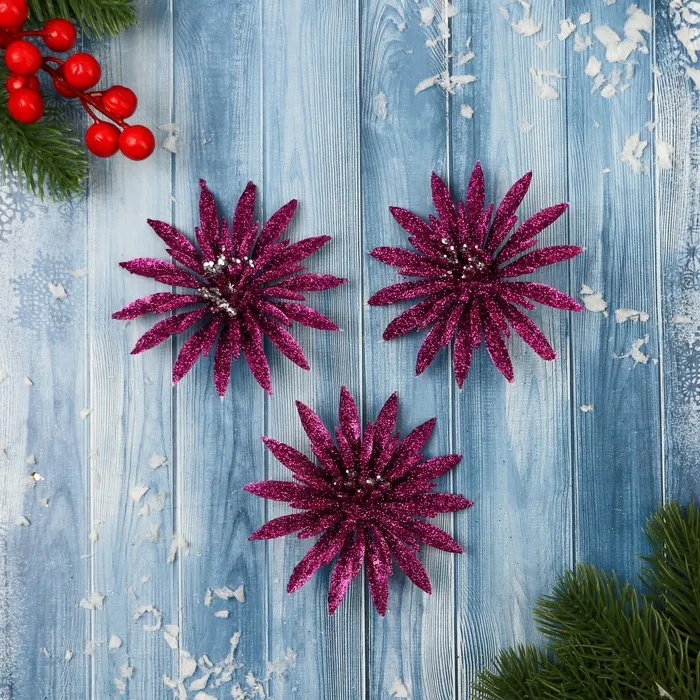Ёлочные игрушки 3 шт. «Зимнее волшебство. Пышный цветок» пластик,10 см, фиолетовый
