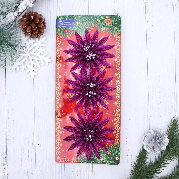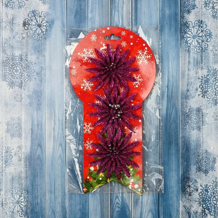 Ёлочные игрушки 3 шт. «Зимнее волшебство. Пышный цветок» пластик,10 см, фиолетовый — Характеристики