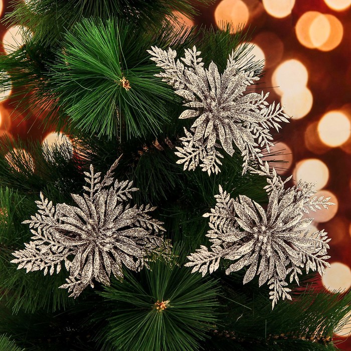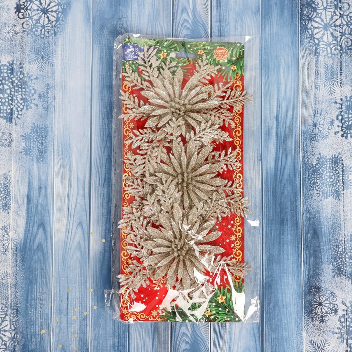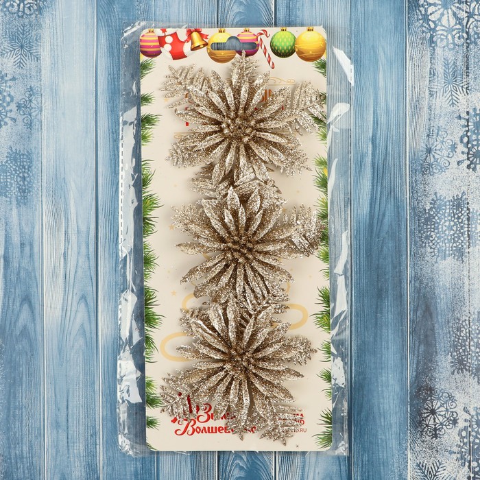 Ёлочные игрушки 3 шт. «Зимнее волшебство. Цветы с узкими лепестками» пластик, 10×10 см, золото — Характеристики