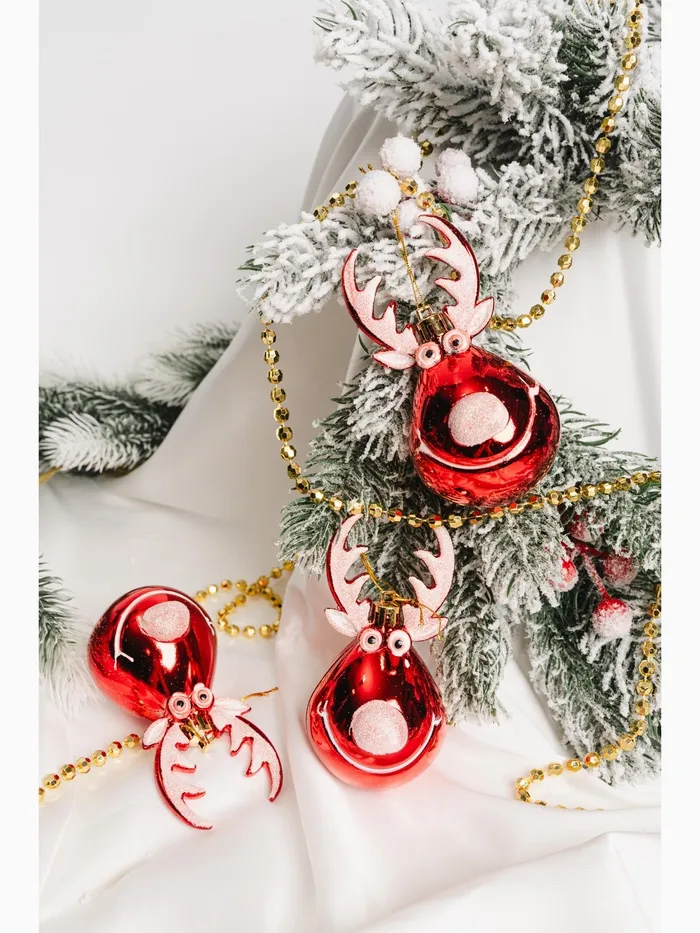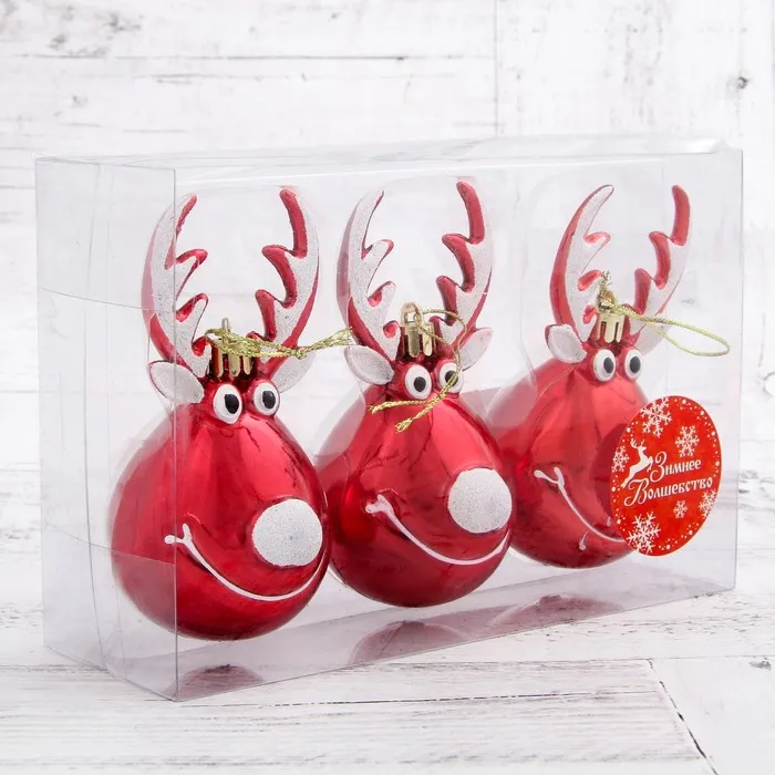 Ёлочные игрушки 3 шт. «Зимнее волшебство. Весёлый олень» пластик, 11х6 см, красный — Характеристики
