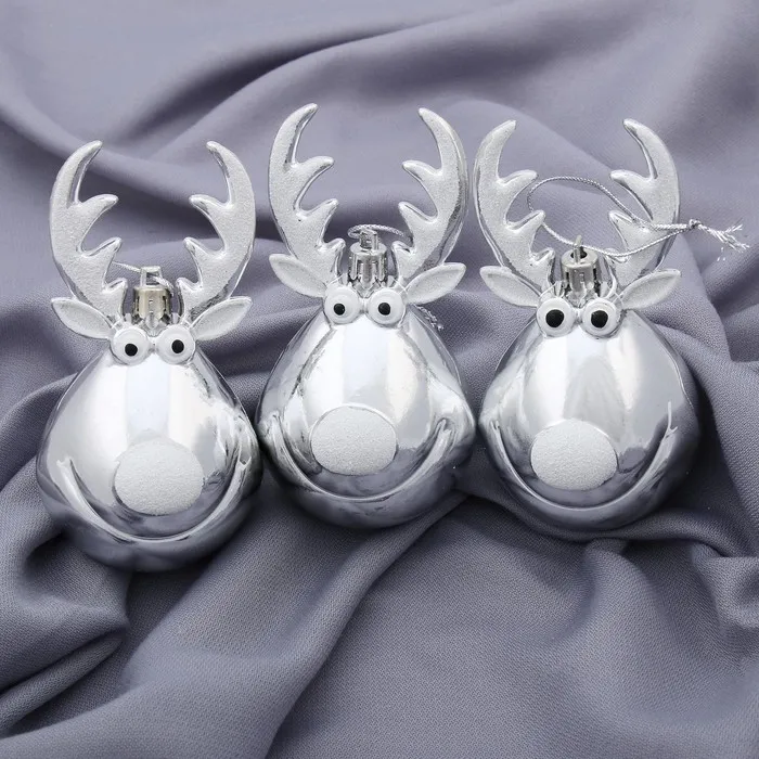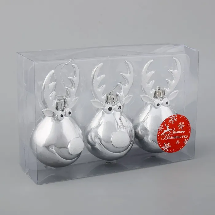 Ёлочные игрушки 3 шт. «Зимнее волшебство. Весёлый олень» пластик, 11х6 см, серебро — Характеристики