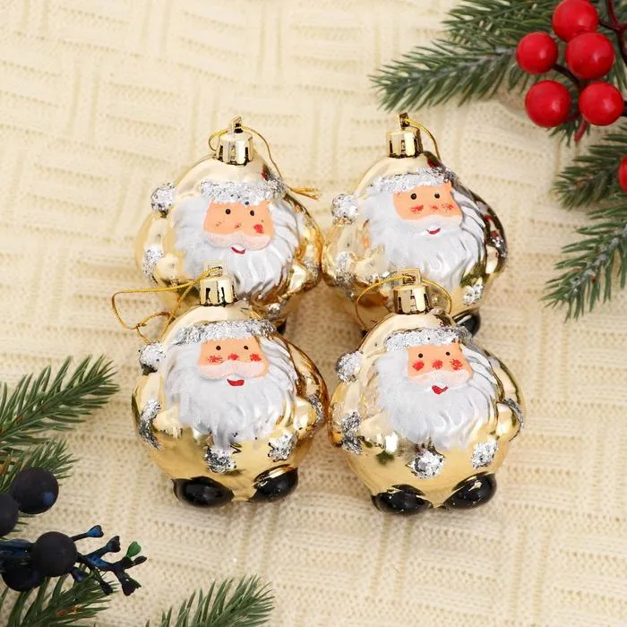 Ёлочные игрушки 4 шт. «Дед Мороз - толстячок», 6×6.5 см, золотистый — Характеристики
