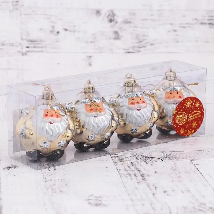 Ёлочные игрушки 4 шт. «Дед Мороз - толстячок», 6×6.5 см, золотистый