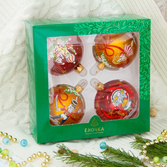 Ёлочные игрушки 4 шт. «Щелкунчик», шары новогодние, d=7.5 см — Характеристики