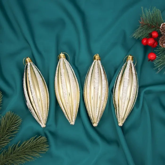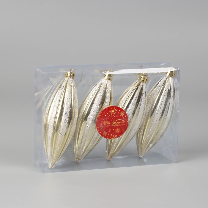 Ёлочные игрушки 4 шт. «Сосулька полосатая блестящая» 13.5×4.5 см, золотисто-белый — Характеристики