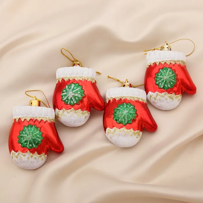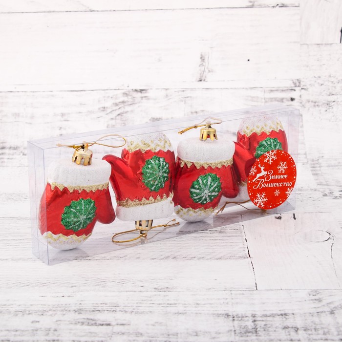 Ёлочные игрушки 4 шт. «Варежка со снежинкой» 6×5 см, красный — Характеристики