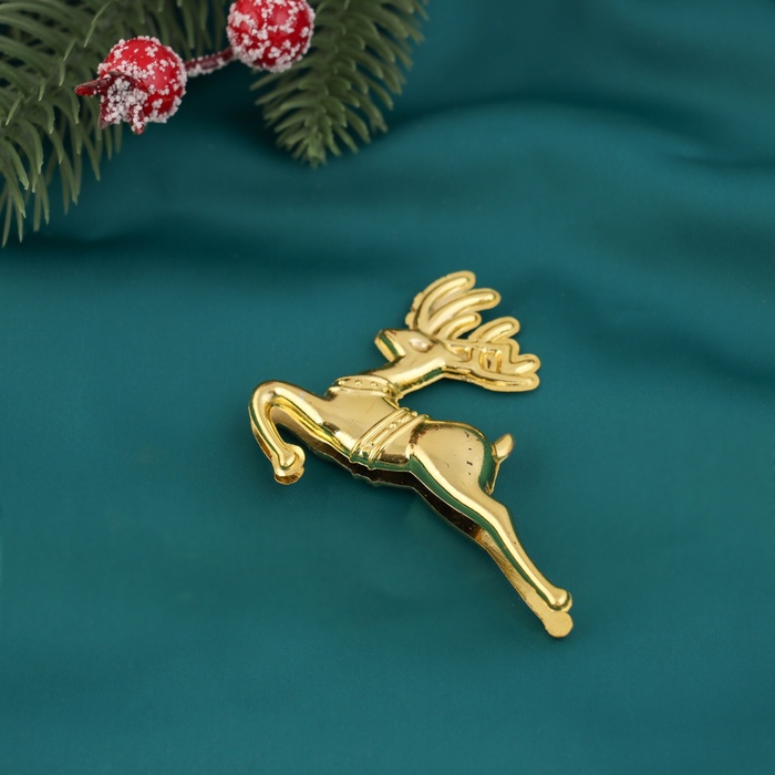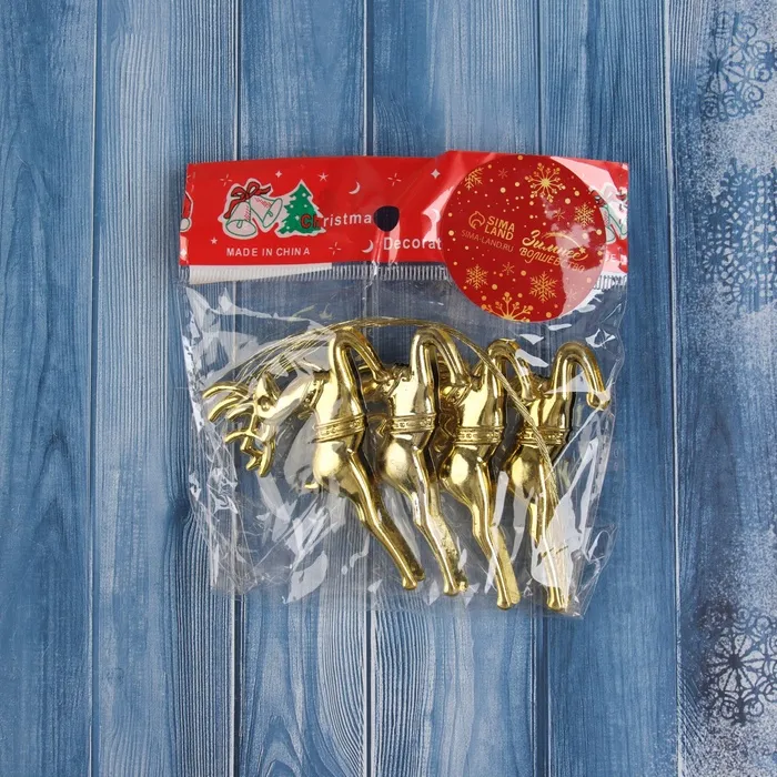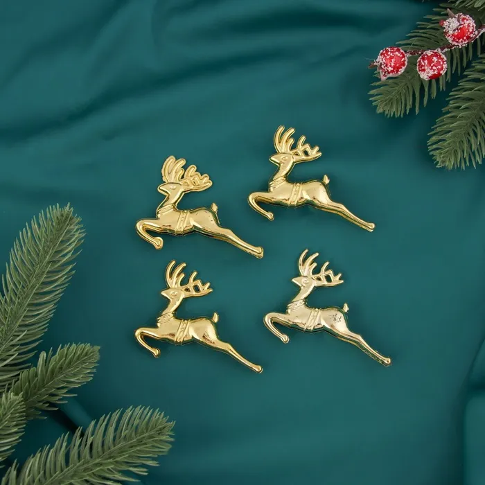 Ёлочные игрушки 4 шт. «Зимнее волшебство. Бегущий олень» пластик, 5×7 см, золото — Характеристики