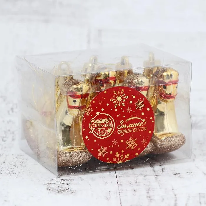 Ёлочные игрушки 4 шт. «Зимнее волшебство. Лошадка - качалка» пластик, 6,5х5 см, золото — Характеристики