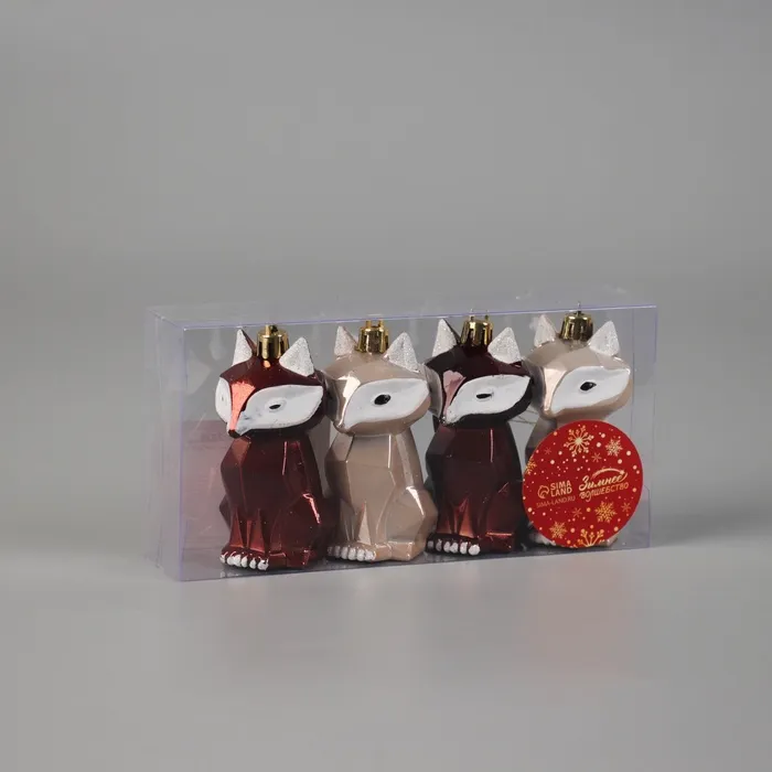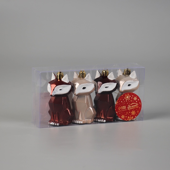 Ёлочные игрушки 4 шт. «Зимнее волшебство. Сказочный лис» пластик, 8.5×3.5 см, бежевый/коричневый — Характеристики