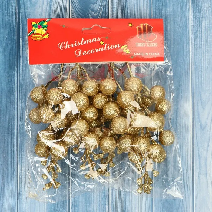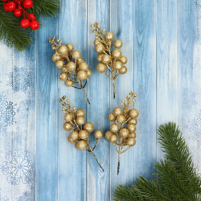 Ёлочные игрушки 4 шт. «Зимнее волшебство. Веточки с ягодками» пластик, 4×19 см, золото — Характеристики