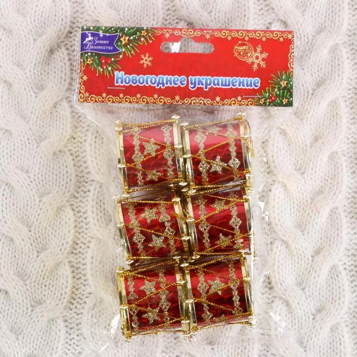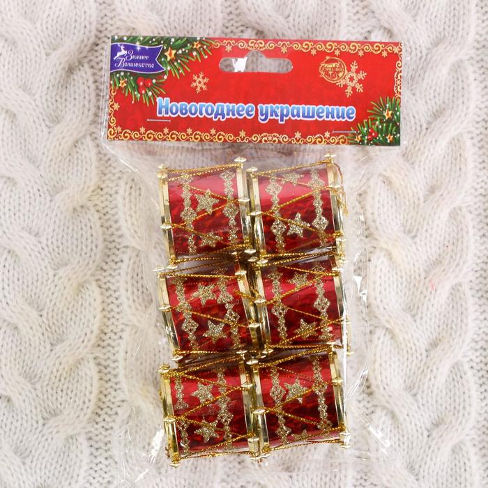 Ёлочные игрушки 6 шт. «Барабан» звезда, 3.5×3.5 см, красный — Характеристики