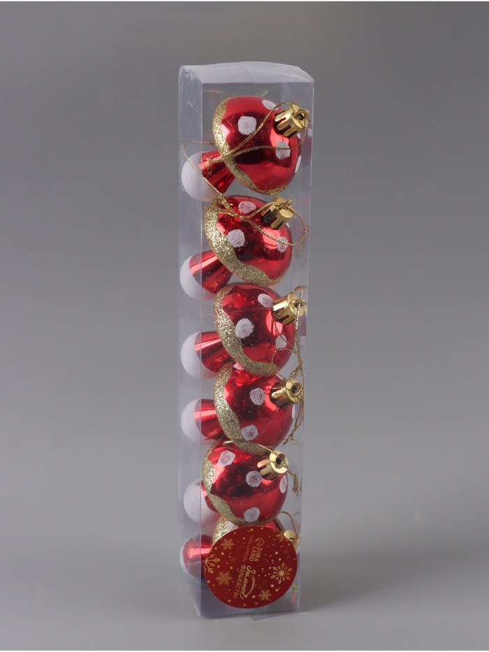 Сказка растёт на вашей ёлке. Новогодние игрушки «Грибочек» — это 6 украшений ярко-красного цвета с золотистыми акцентами, выполненных из прочного пластика. Игрушки в форме грибов добавляют праздничной ёлке нотку волшебства и неожиданности. Дизайн сочетает элементы фьюжн и советской эстетики, создавая уникальный образ новогоднего леса в миниатюре.