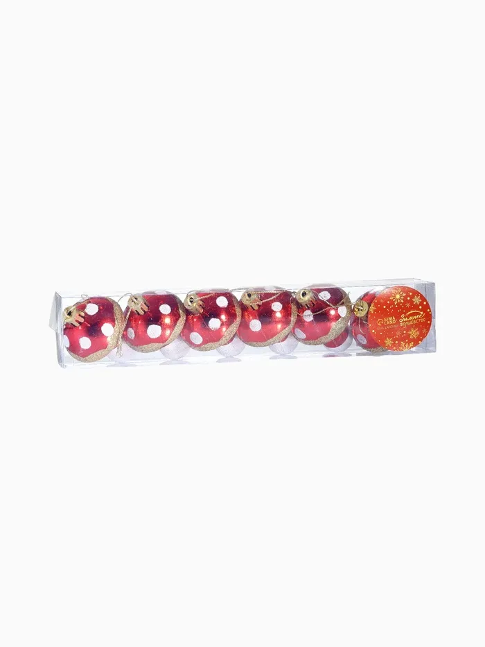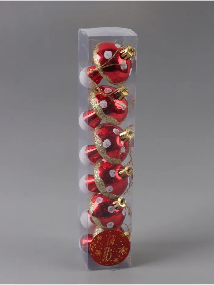 Сказка растёт на вашей ёлке. Новогодние игрушки «Грибочек» — это 6 украшений ярко-красного цвета с золотистыми акцентами, выполненных из прочного пластика. Игрушки в форме грибов добавляют праздничной ёлке нотку волшебства и неожиданности. Дизайн сочетает элементы фьюжн и советской эстетики, создавая уникальный образ новогоднего леса в миниатюре.