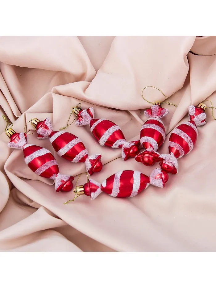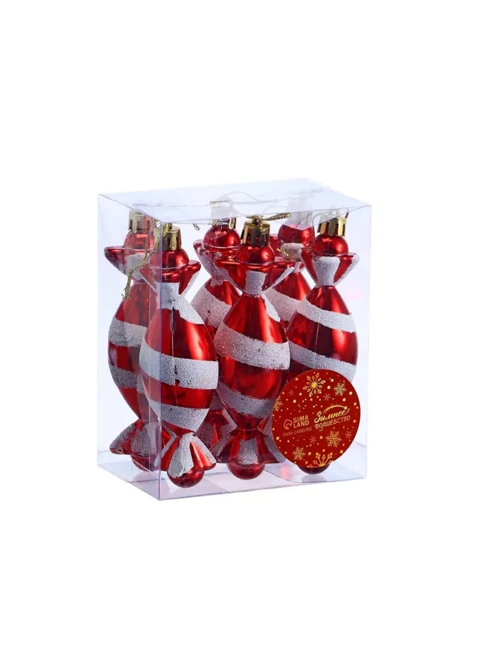 Ёлочные игрушки 6 шт. «Конфетки полосатые» 3.5×10.5 см, красно-белый — Характеристики