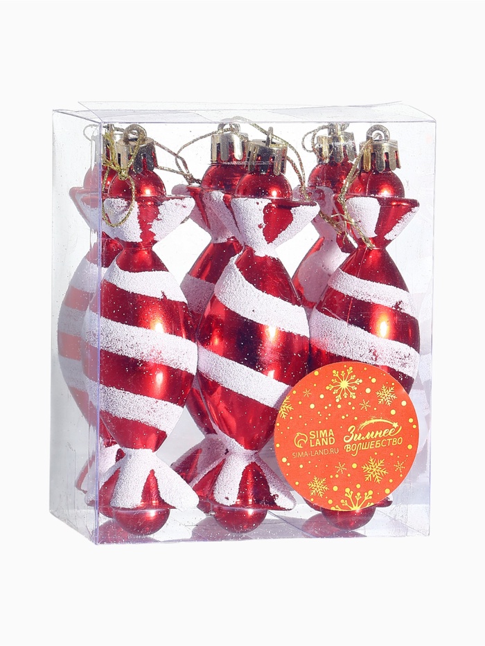 Ёлочные игрушки 6 шт. «Конфетки полосатые» 3.5×10.5 см, красно-белый — Характеристики