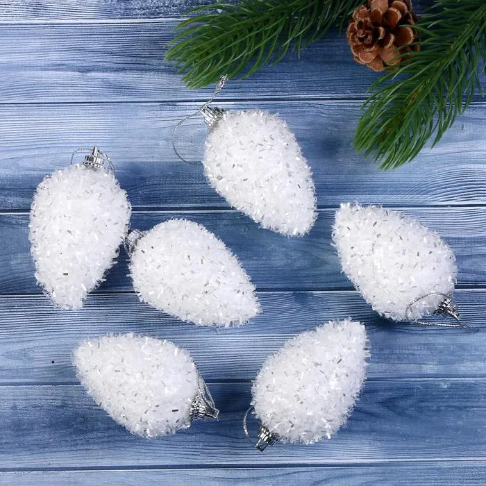 Ёлочные игрушки 6 шт. «Сосулька - пушинка», 4×6 см, белый — Характеристики