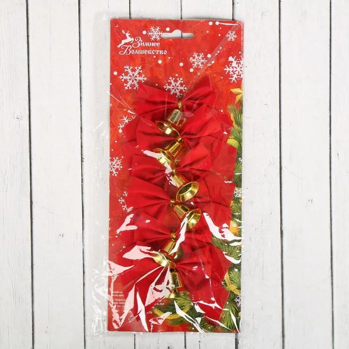 Ёлочные игрушки 6 шт. «Зимнее волшебство. Бантик с колокольчиком» пластик, 10 см, красны преобразят новогоднюю ель, также ими можно украсить и любые другие предметы. Сделайте праздничное убранство ярким!