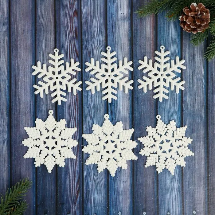 Ёлочные игрушки 6 шт. «Зимнее волшебство. Белая снежинка» пластик, d-8 см и 9 см